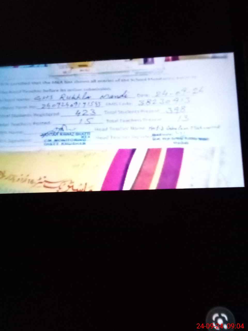 | Certified that this School was Inspected by the Undersigned MEA/DMO Today and the Information Stated Above is as Per Record. | |||||