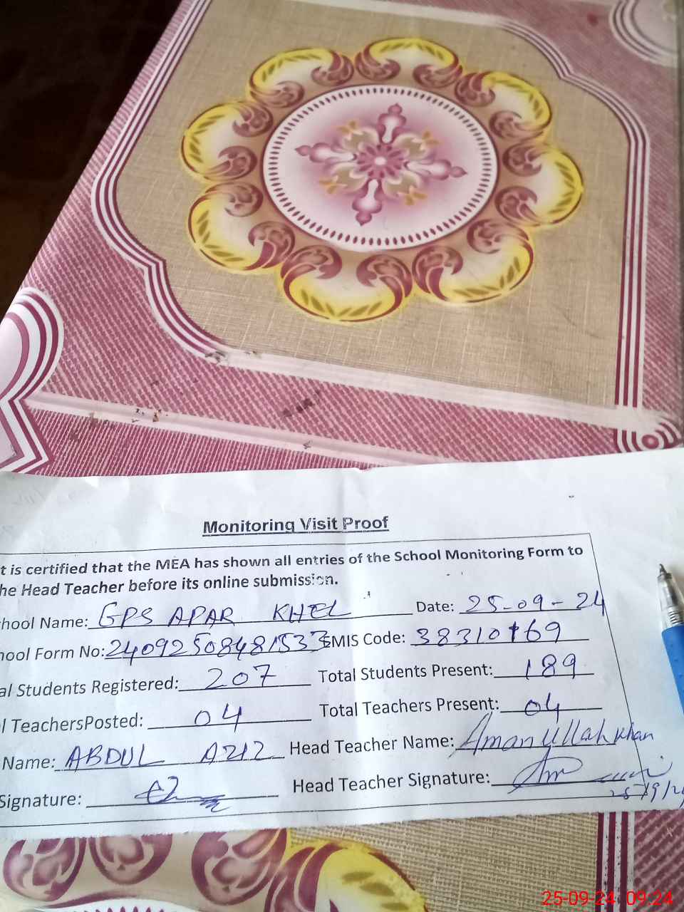 | EMIS Code: 38310169 | Name of School: GPS APAR KHEL WALA | |||