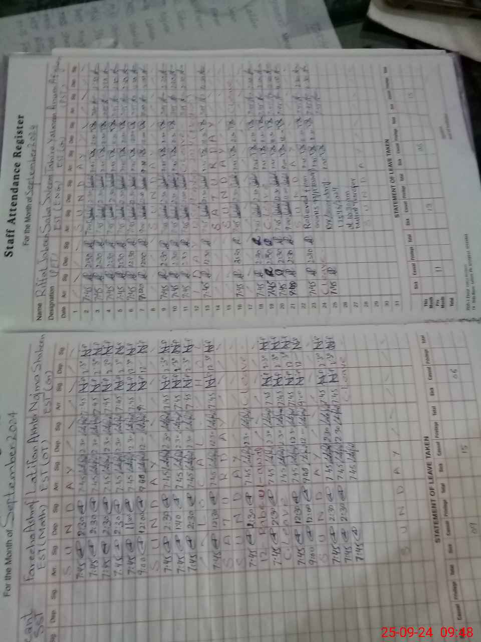 | Leave | Duty | Absent | Maternity | Medical | Ex- Pak |