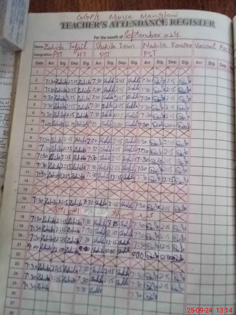 | Name: Za**** Tu**** Designation: (School Headmaster's/Headmistress's) ESE Sc Math Phone/Cell Number: 03**** |