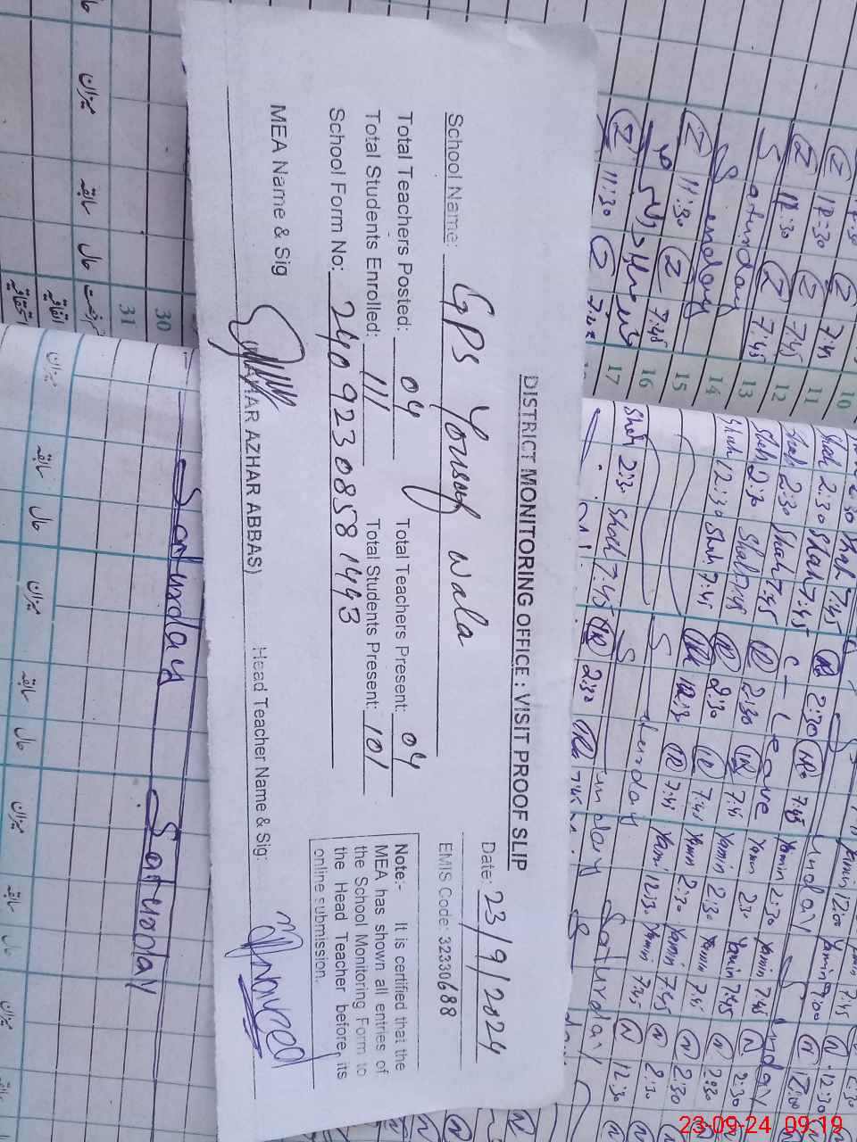 | EMIS Code: 32330688 | Name of School: GPS YOUSAF WALA | |||