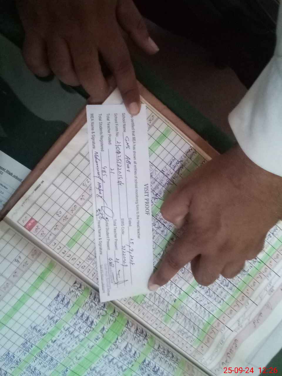 | Attendance Register | Head Teacher | MEA with School | Visit Proof |