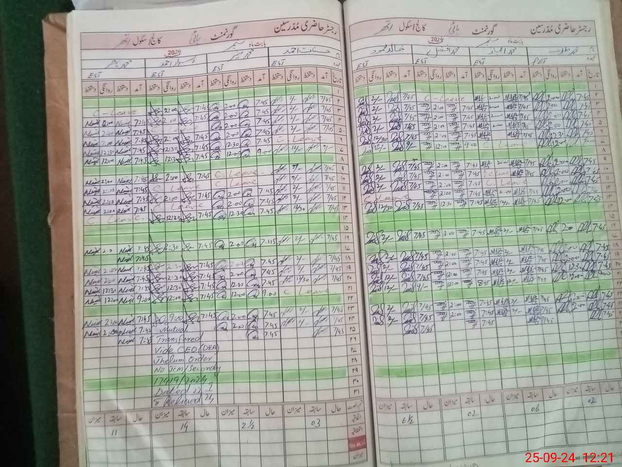 | Total no. of Classrooms: 14 No. of Classrooms Used for Teaching: 7 No. of Classrooms Storing Old Furniture, FTBs, etc: 0Comments if Any: EST teacher Kamran Hayat was transferred GHS Saroba to GHS Athar but on teacher attendance register he was present in both school on same time dated 23 September 2024 Please check and take action Given list of students of 10th class but students are alre |