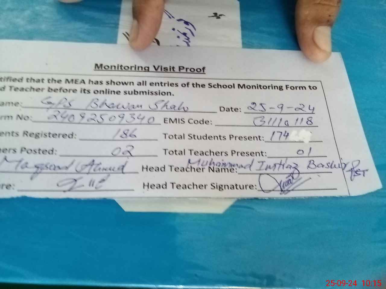 | Attendance Register | Head Teacher | MEA with School | Visit Proof |
