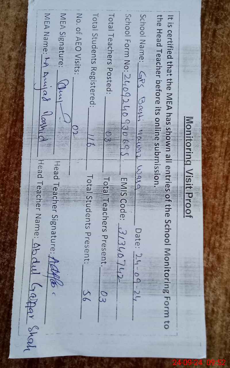 | EMIS Code: 31340742 | Name of School: GPS BASTI M.NAWAZ WASA | |||