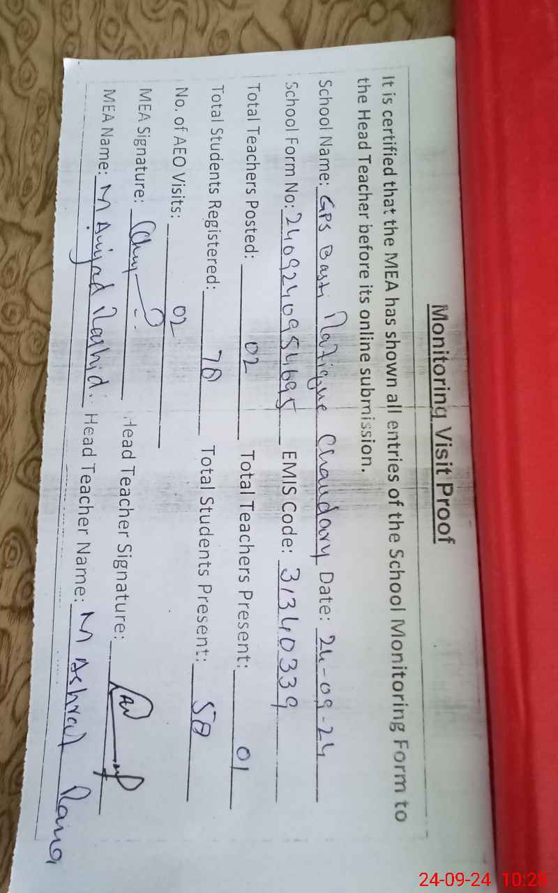 | EMIS Code: 31340339 | Name of School: GPS BASTI RAFIQ CH. PO CHAK NO 24 | |||