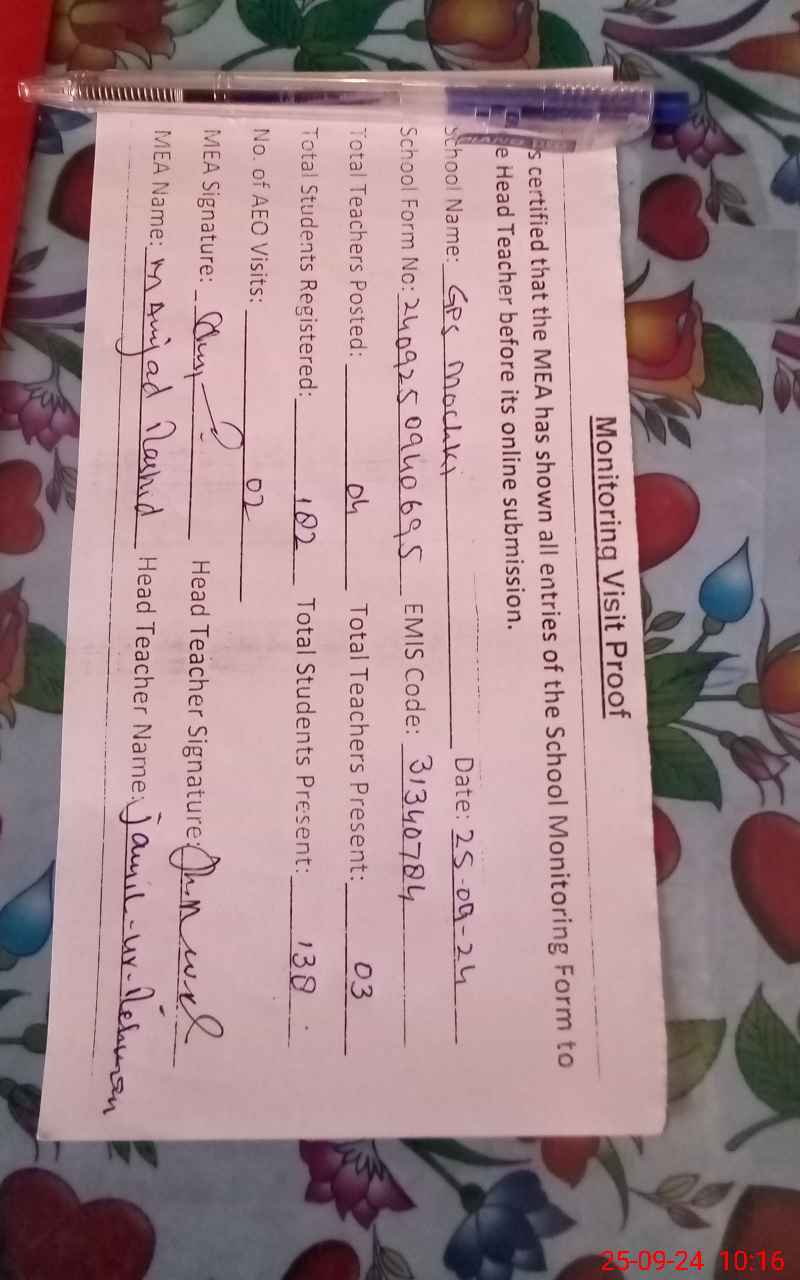 | EMIS Code: 31340784 | Name of School: GPS MOCHKI | |||