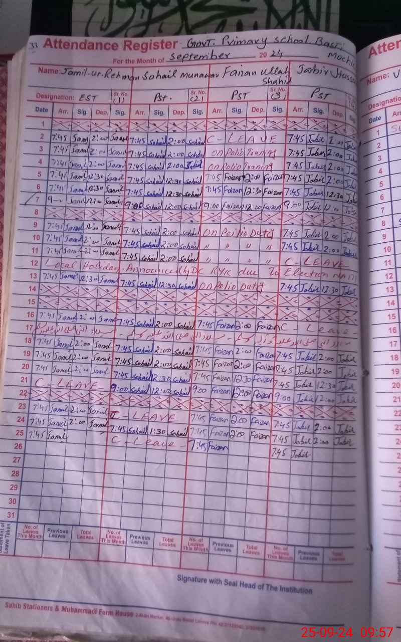 | CNIC | Full Name | Designation | R/C | Absence During Last Calender Month |