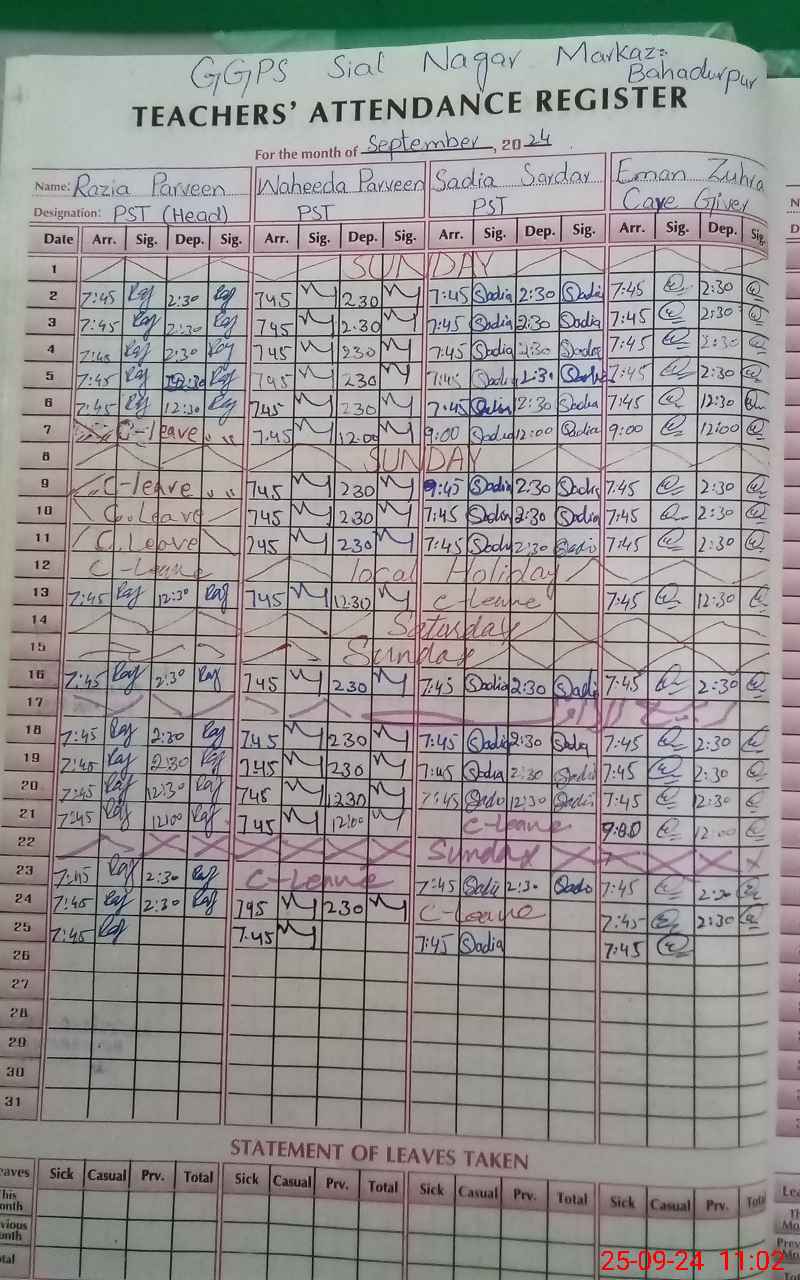 | Remarks (Use Separate Page if Required): C IV Tanvir Ahmed maked absent as his attendence column in attendence register found blanked 11 September 2024 to till date | |||||