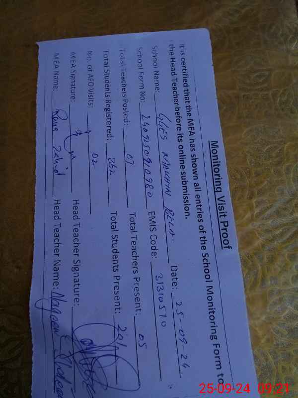 | Attendance Register | Head Teacher | MEA with School | Visit Proof |