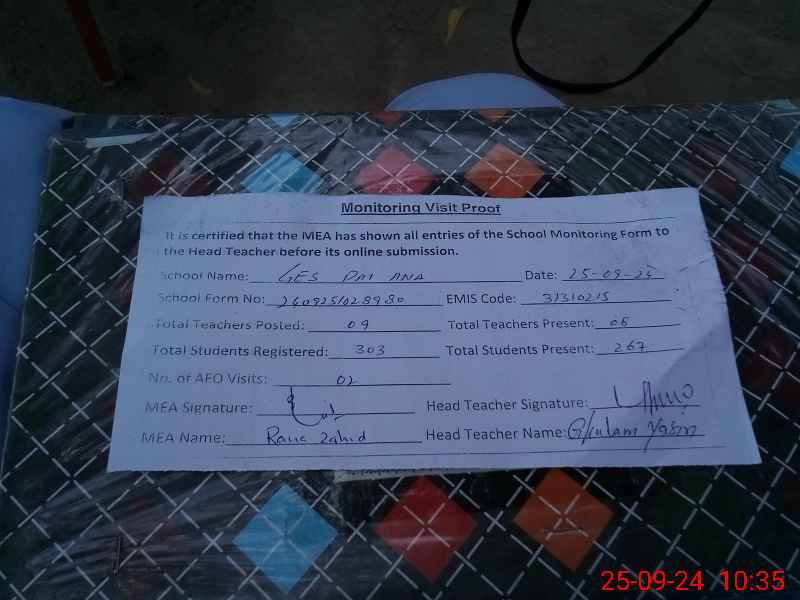 | Certified that this School was Inspected by the Undersigned MEA/DMO Today and the Information Stated Above is as Per Record. | |||||