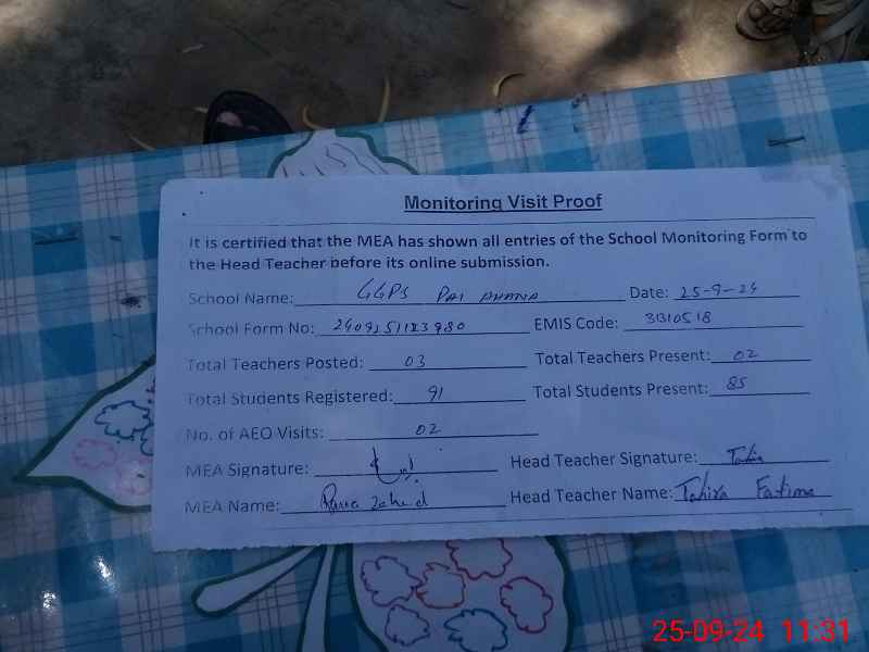 | EMIS Code: 31310518 | Name of School: GGPS PAIAHNA | |||