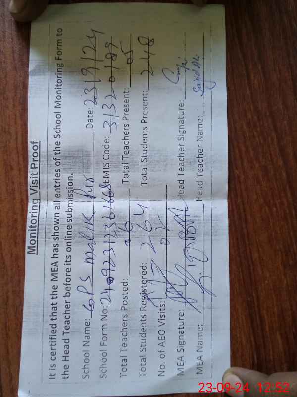 | EMIS Code: 31320189 | Name of School: GPS MALIK PUR | |||