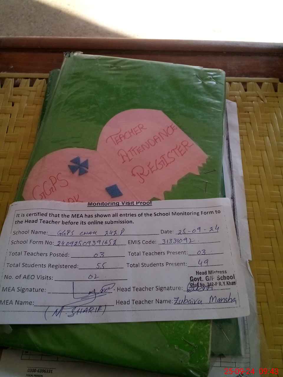 | EMIS Code: 31331092 | Name of School: GGPS CHAK 242 P | |||