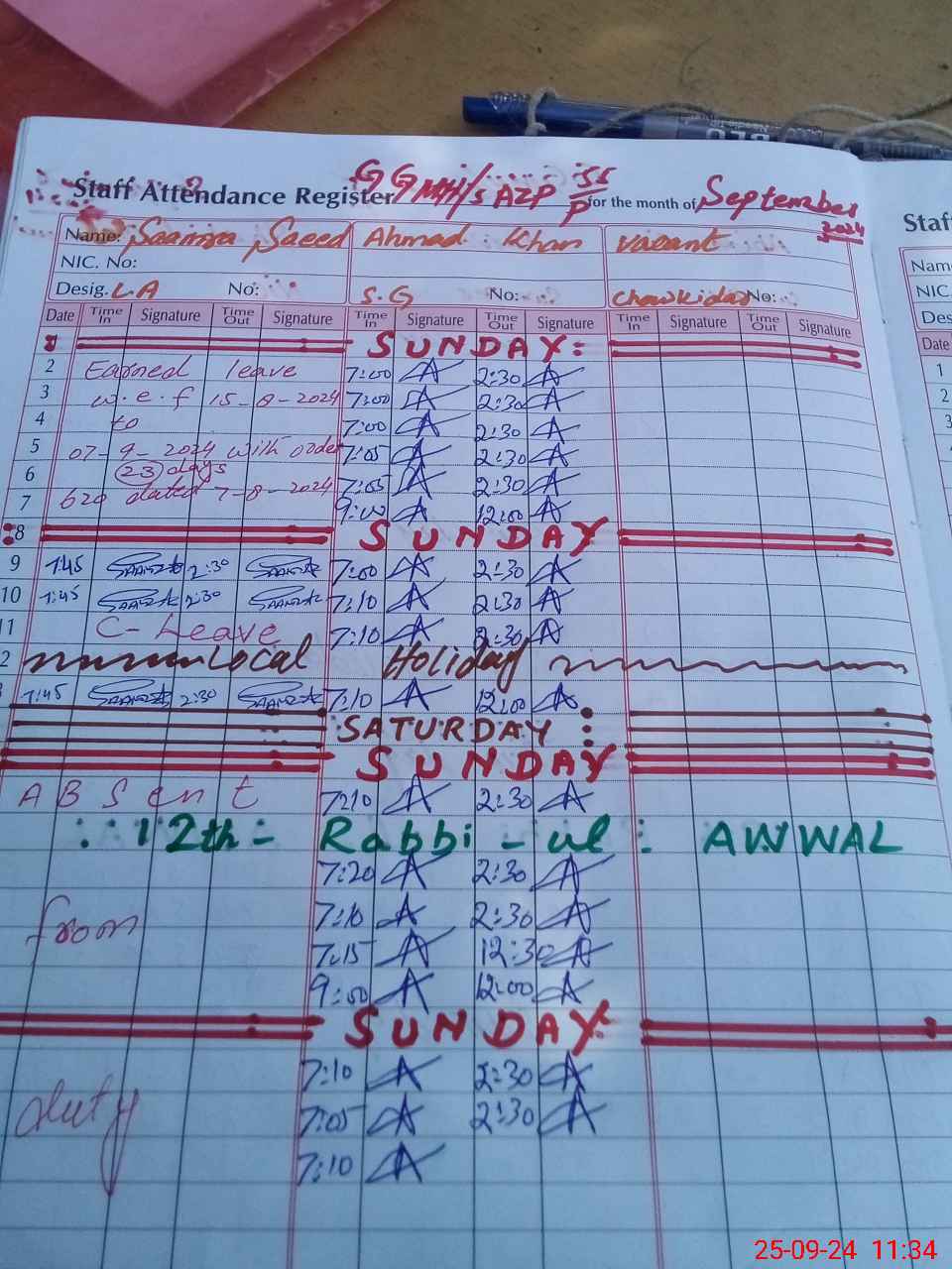 | 31**** | Sa**** Sa**** | LA | 0 | 0 | 0 | 0 | 0 | 0 | 0 | 0 | 0 | Absent (Un-Authorized) | |