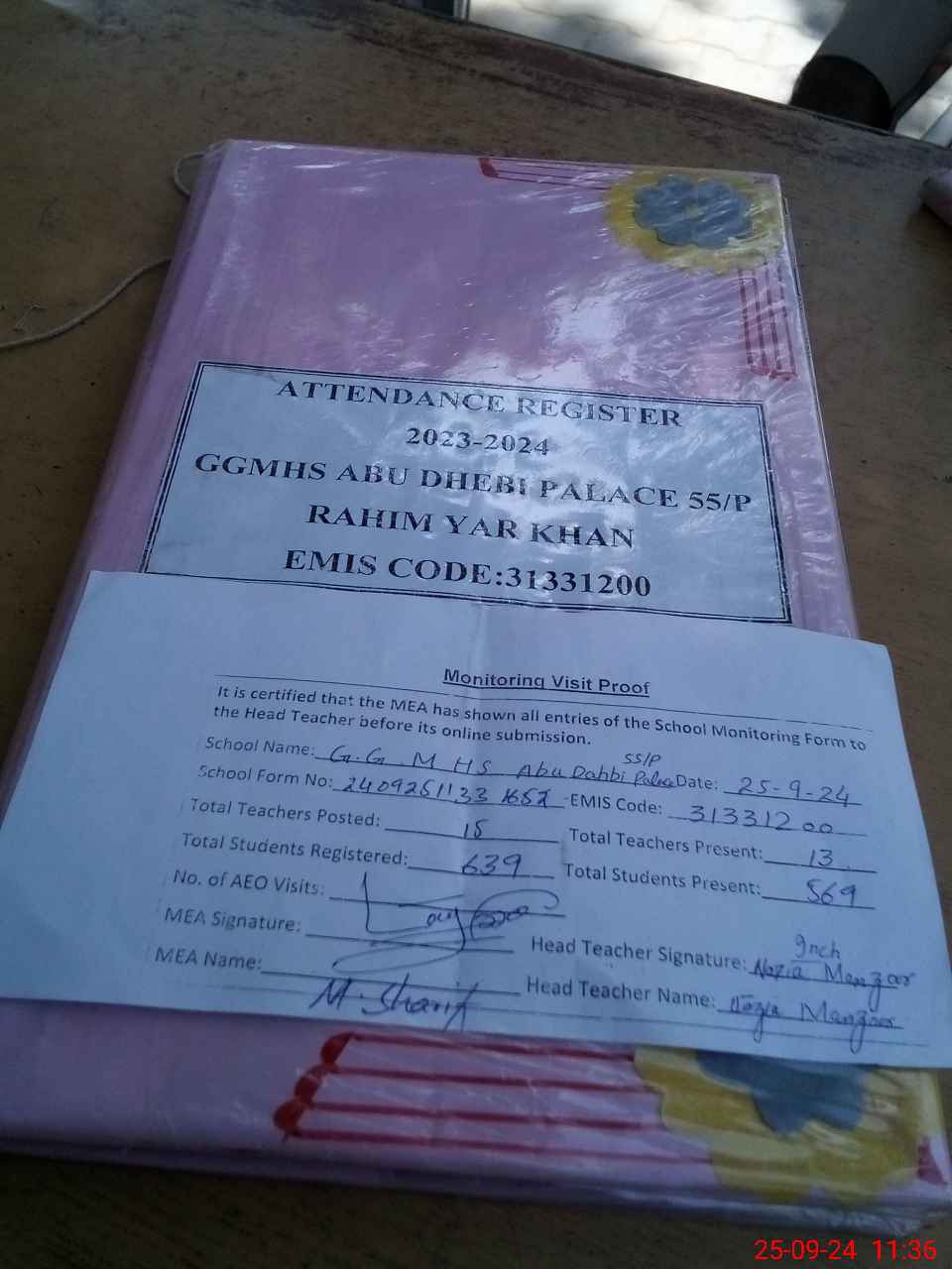 | Attendance Register | Head Teacher | MEA with School | Visit Proof |