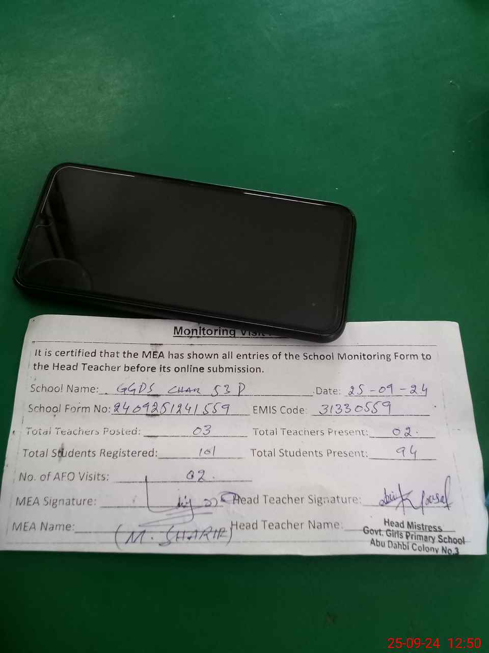 | EMIS Code: 31330559 | Name of School: GGPS NO.3 ABU ZAHBI COLONY NO 3 | |||