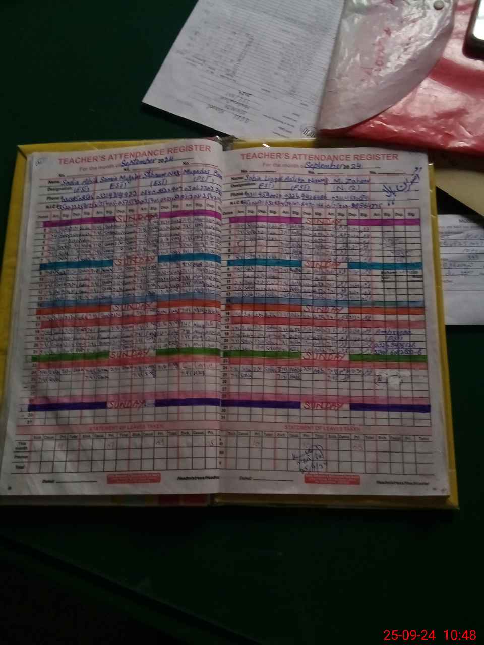 | CNIC | Full Name | Designation | R/C | Absence During Last Calender Month |
