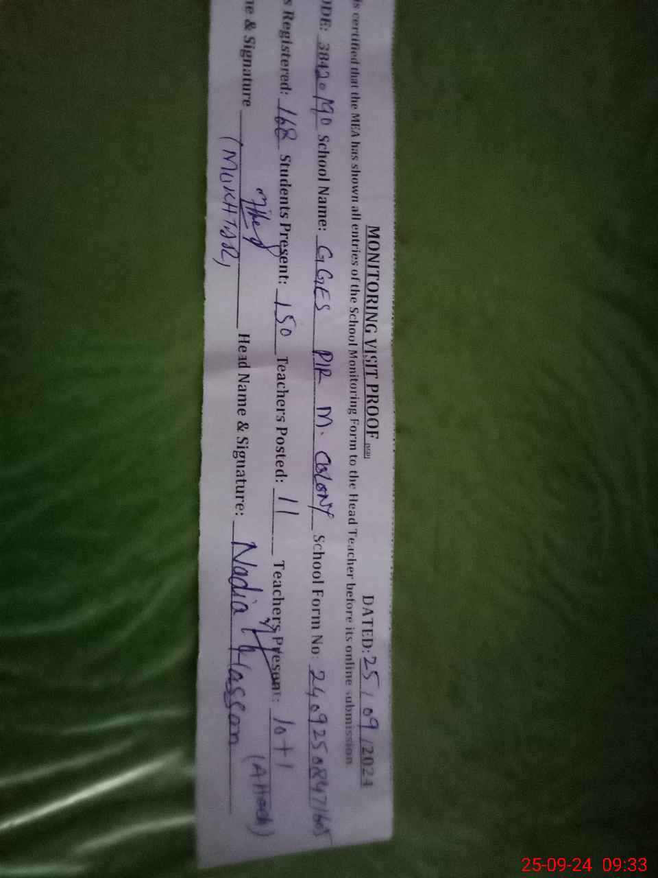 | EMIS Code: 38420190 | Name of School: GGES PIR MUHAMMAD COLONY | |||