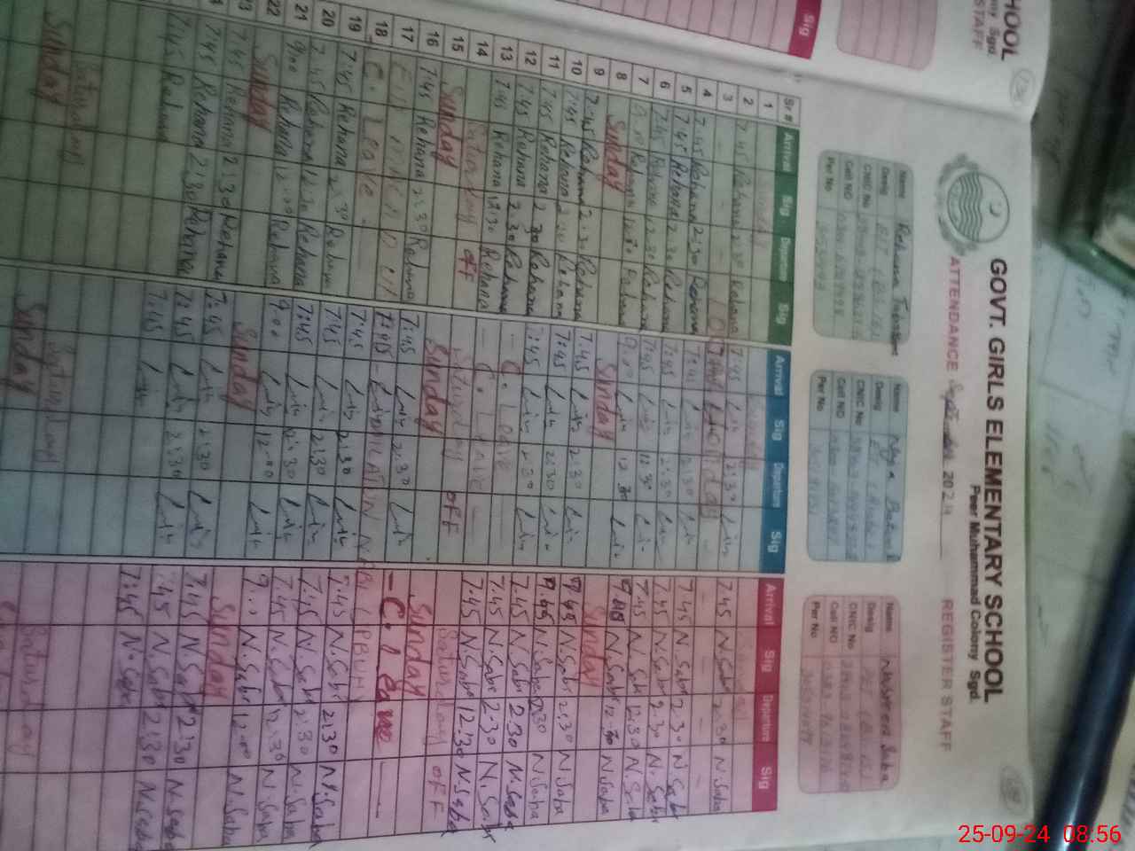 | Remarks (Use Separate Page if Required): Zainab Arooj EST Science GGES Chak 23 ASB attach with this school since 09 September 2024 | |||||