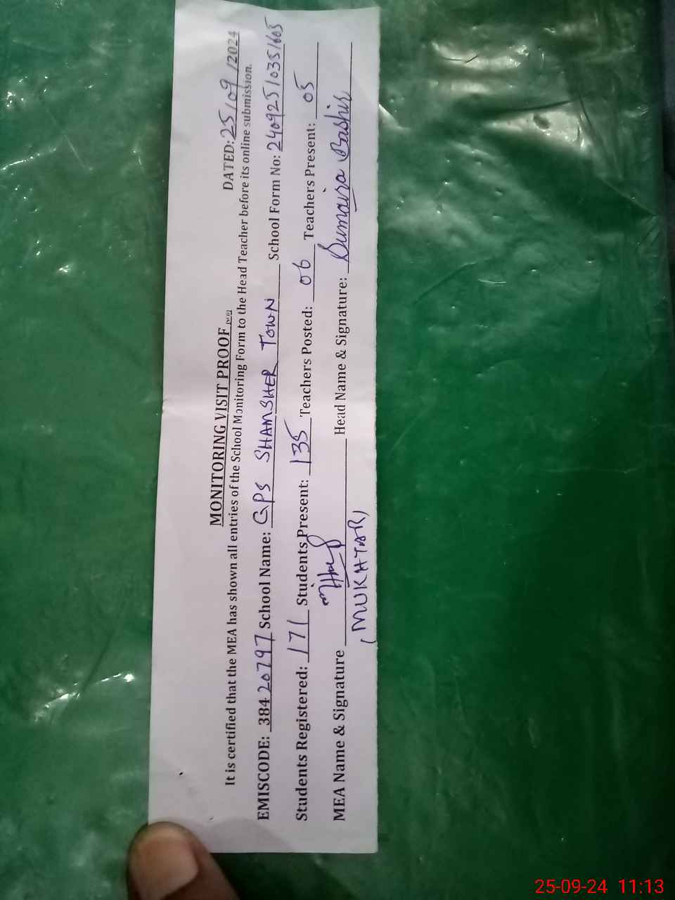 | EMIS Code: 38420797 | Name of School: GPS SHAMSHER TOWN | |||