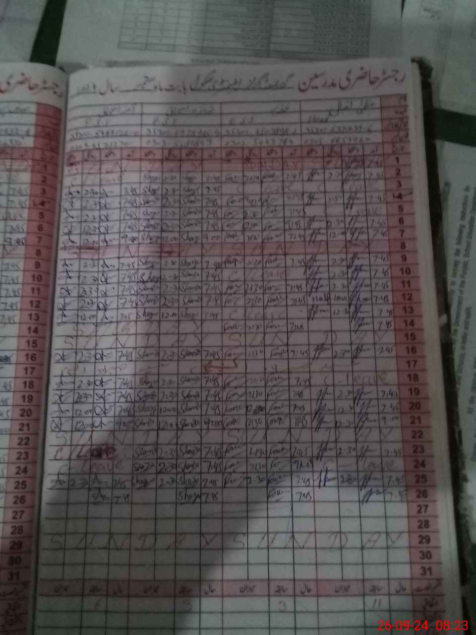 | CNIC | Full Name | Designation | R/C | Absence During Last Calender Month |
