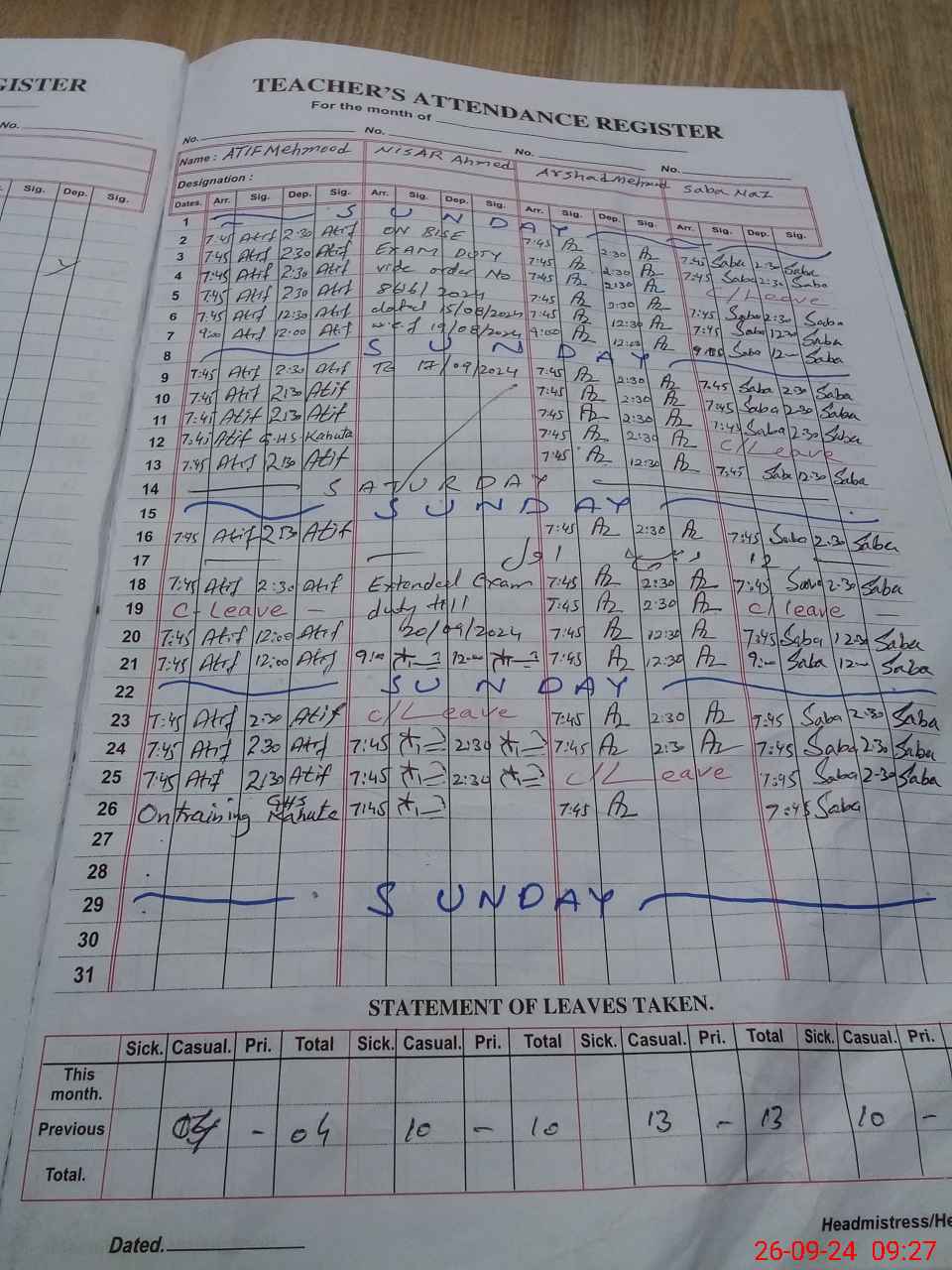 | Leave | Duty | Absent | Maternity | Medical | Ex- Pak |