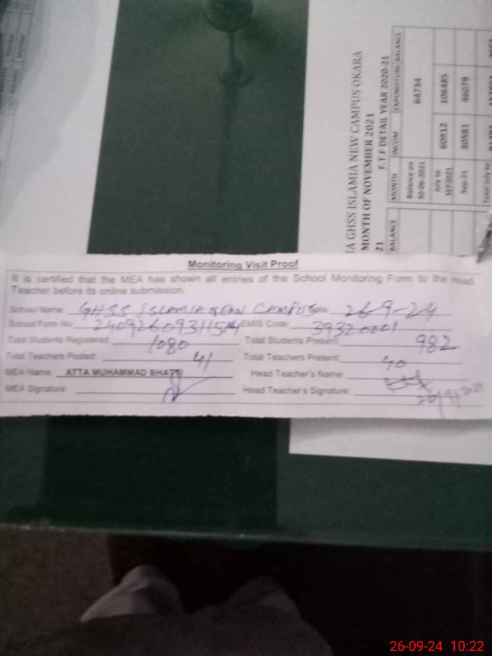 | EMIS Code: 39320001 | Name of School: GHSS ISLAMIA NEW CAMPUS | |||