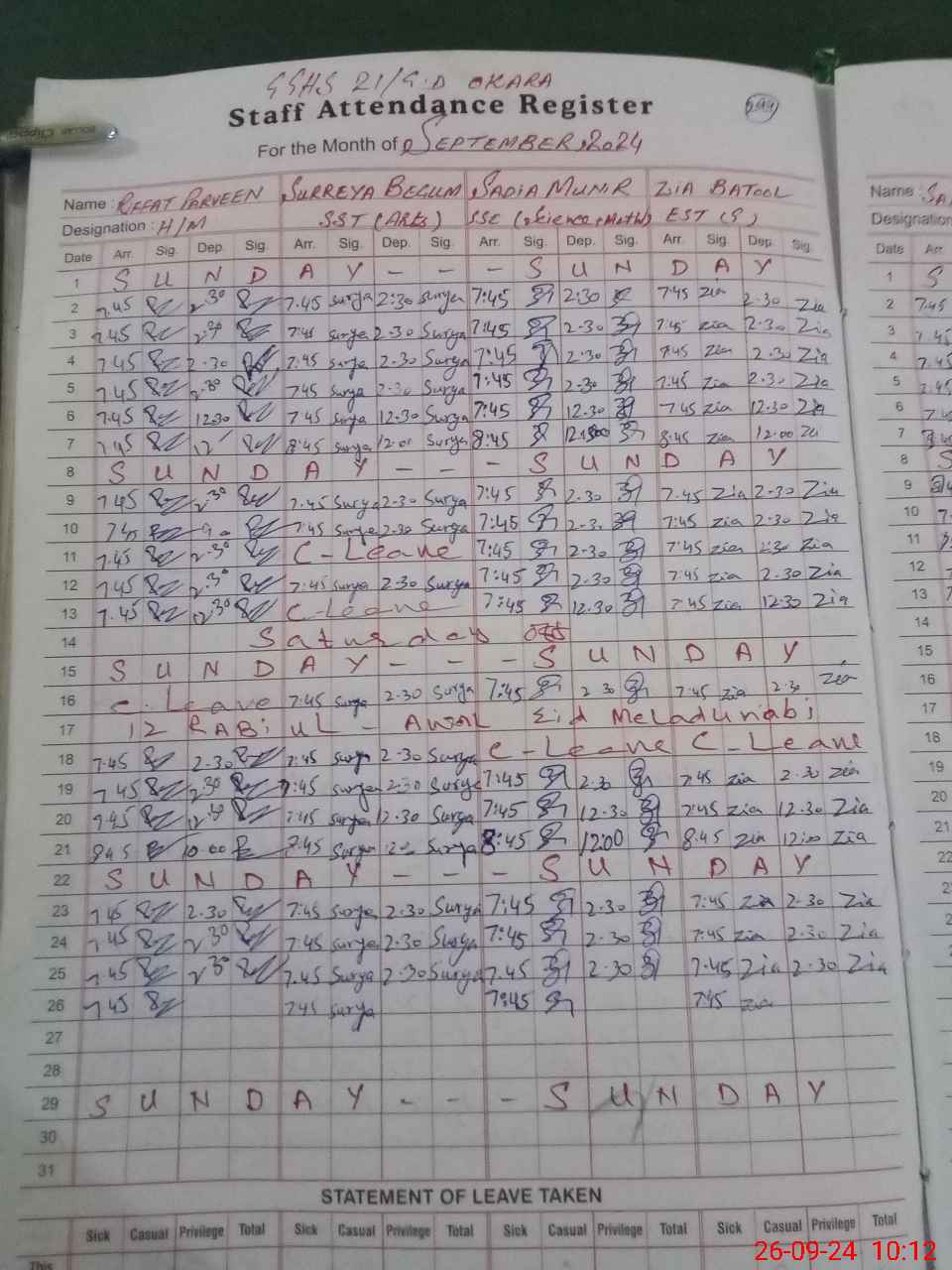 | Leave | Duty | Absent | Maternity | Medical | Ex- Pak |