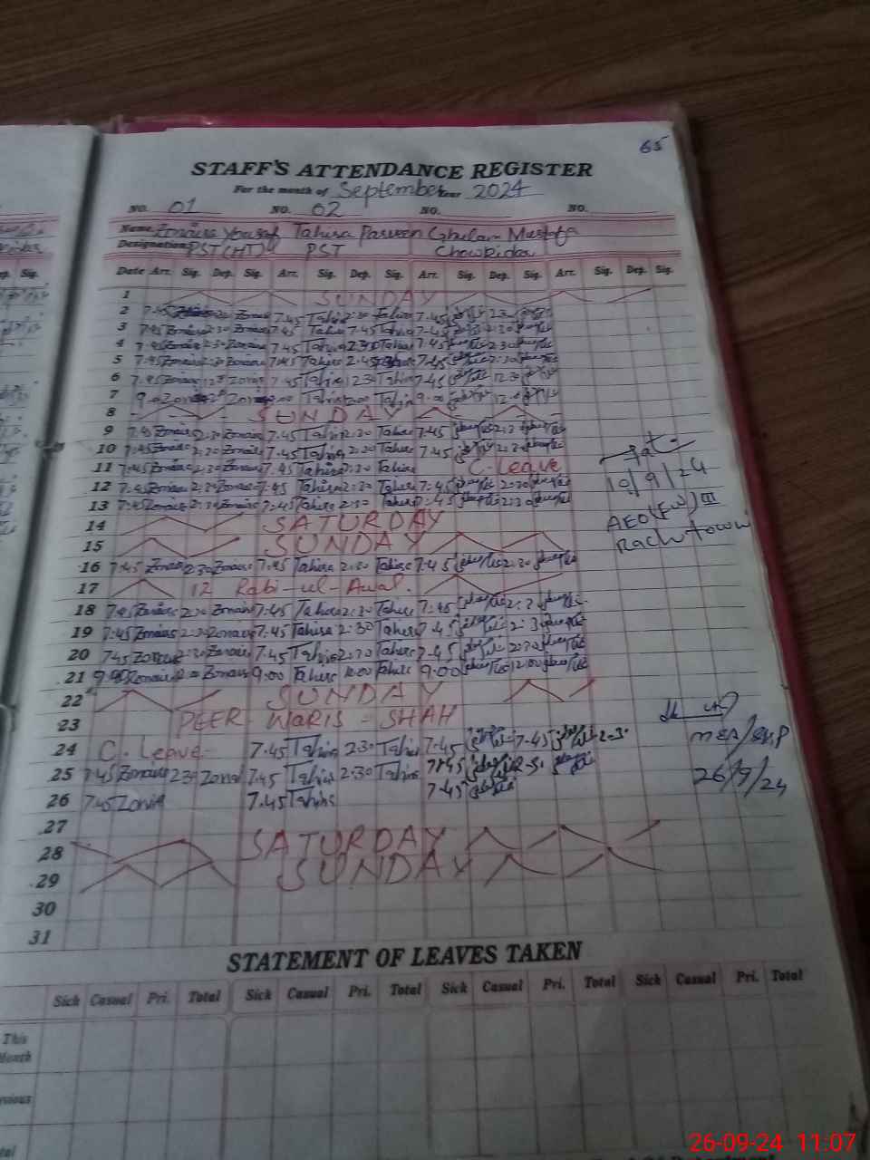 | Name: Zu**** Yo**** Designation: (School Headmaster's/Headmistress's) PST Phone/Cell Number: 03**** |