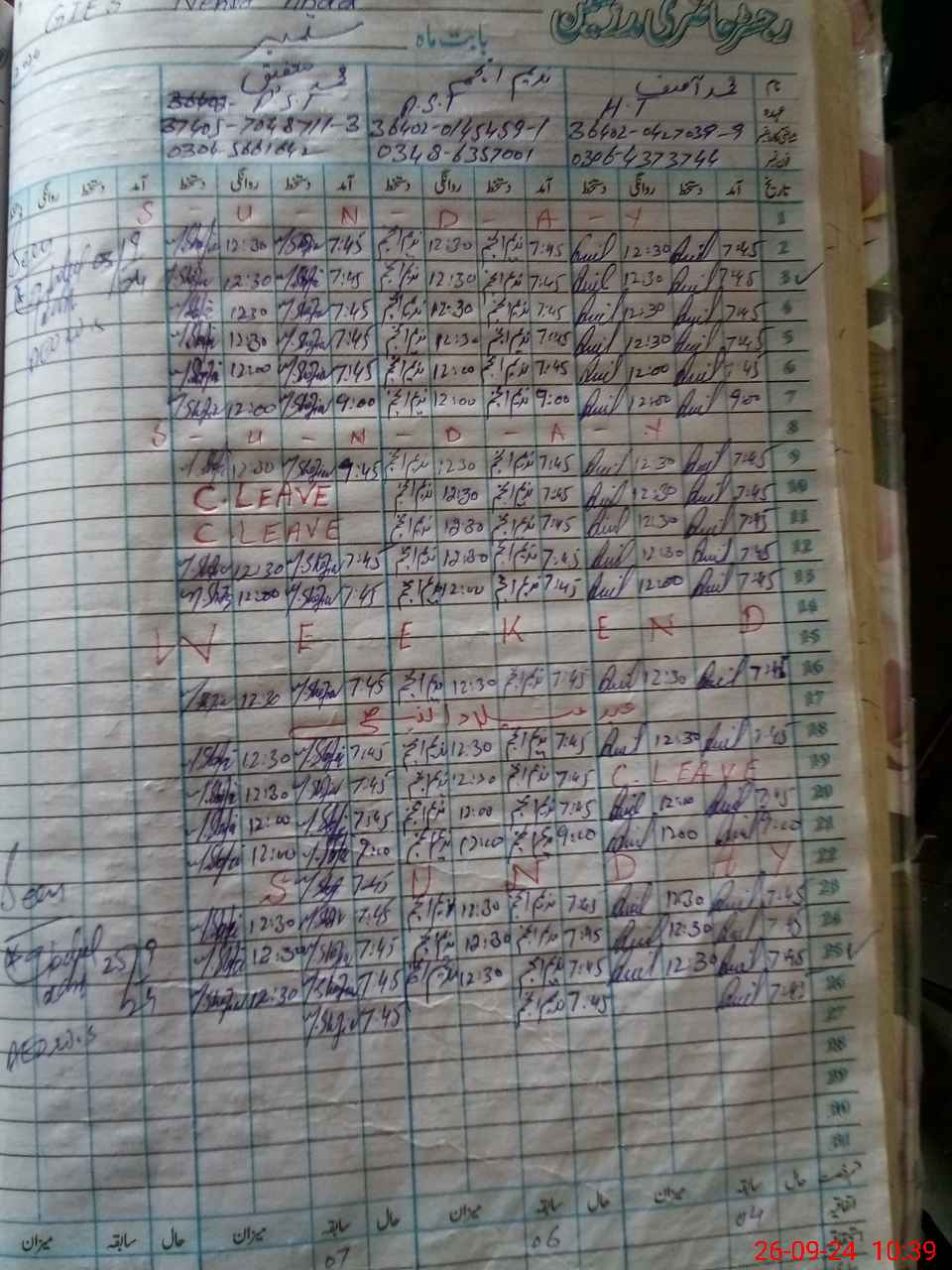 | Leave | Duty | Absent | Maternity | Medical | Ex- Pak |
