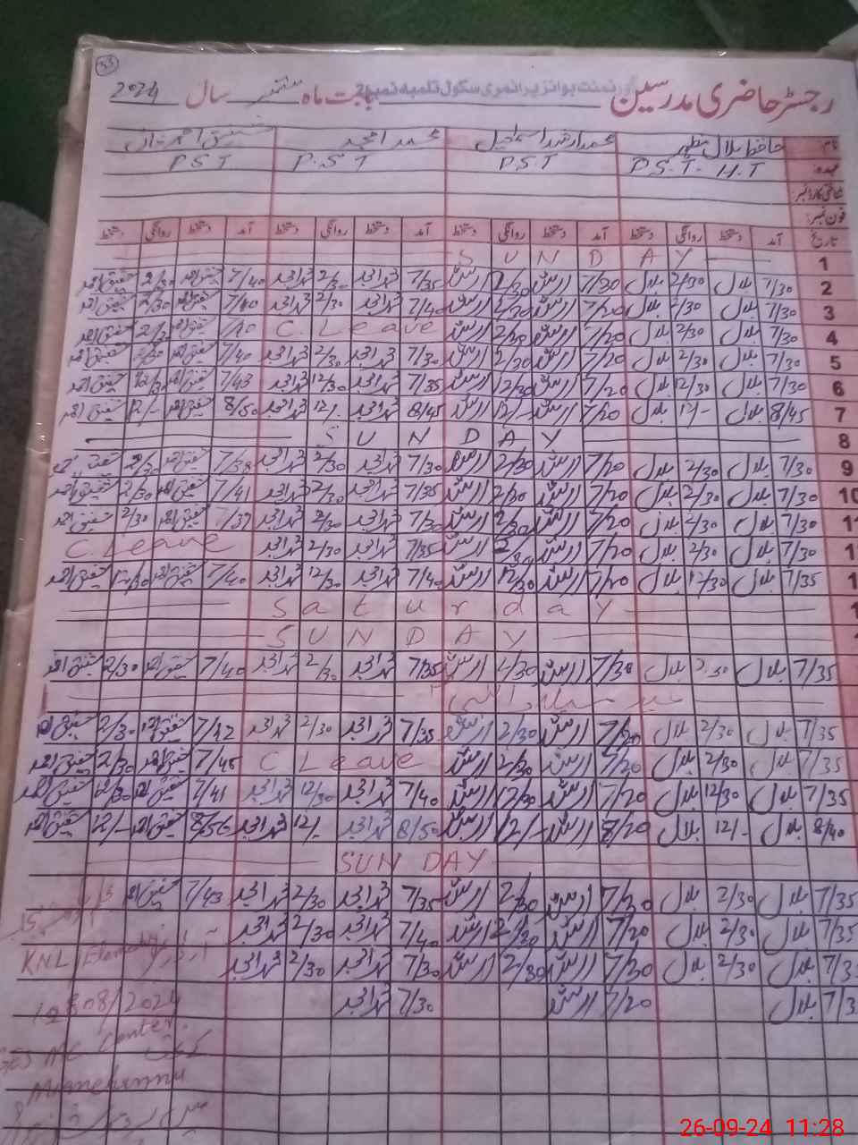 | Name: MU**** BI**** MA**** Designation: (School Headmaster's/Headmistress's) PST Phone/Cell Number: 03**** |