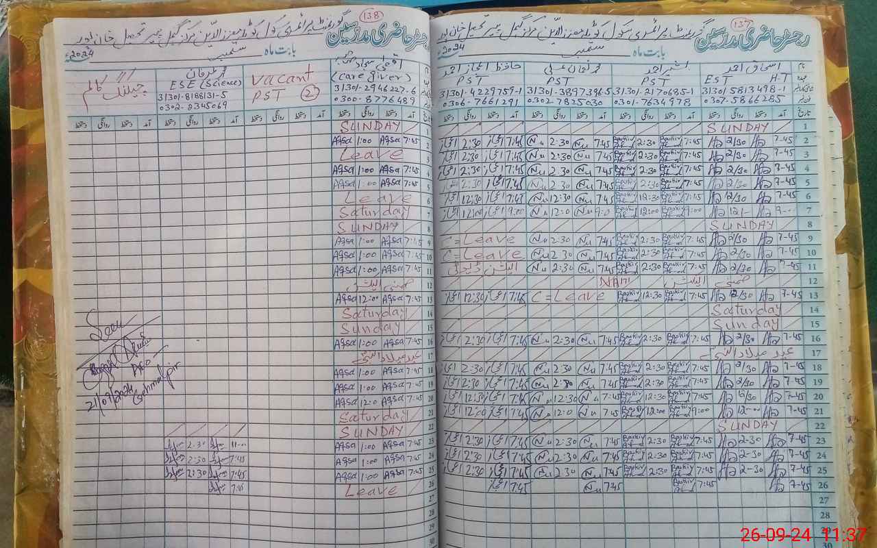 | Name: Is**** Ah**** Designation: (School Headmaster's/Headmistress's) E S T Gen Phone/Cell Number: 03**** |