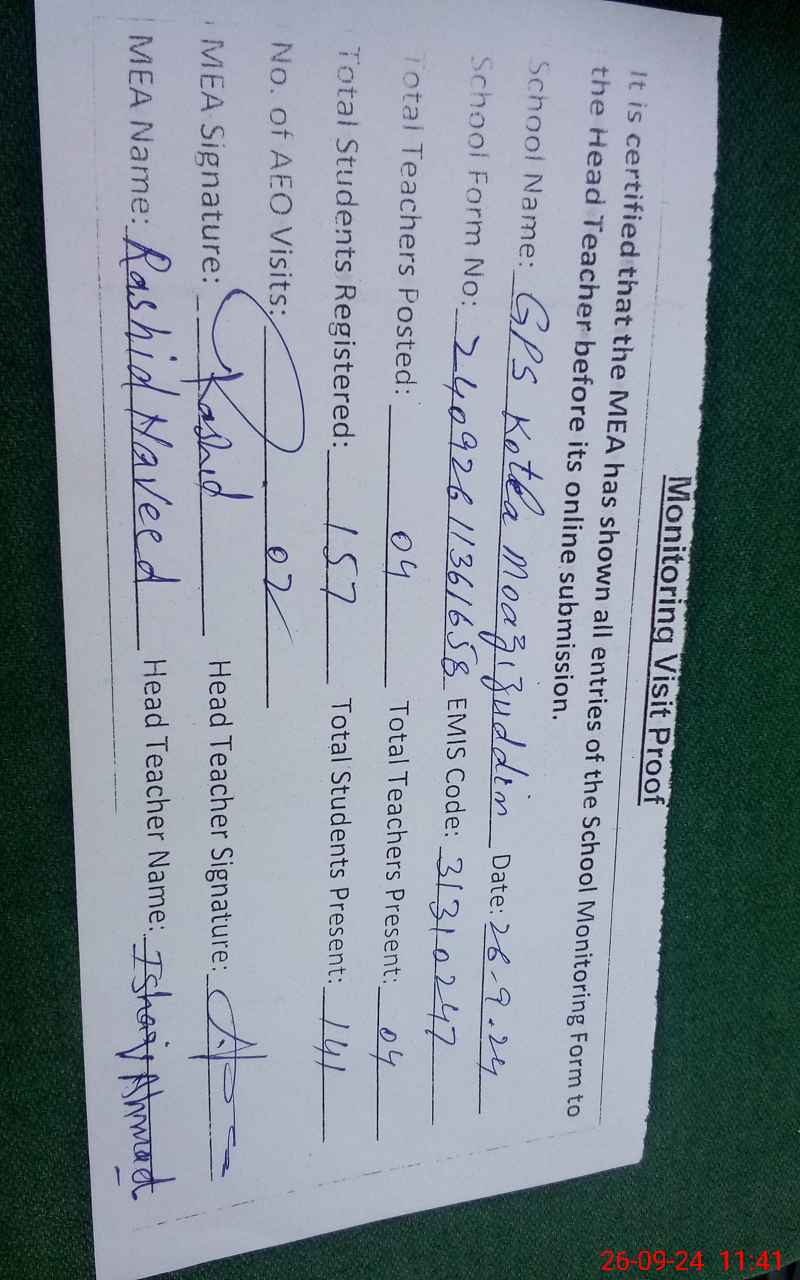 | EMIS Code: 31310247 | Name of School: GPS KOTLA MOAZIZ-UD-DIN | |||