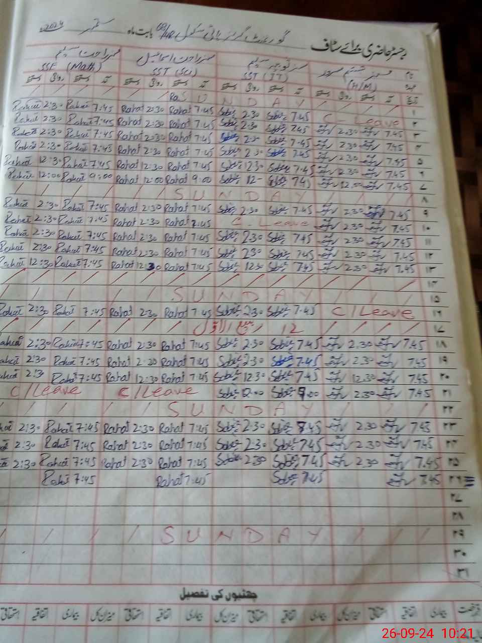 | Leave | Duty | Absent | Maternity | Medical | Ex- Pak |