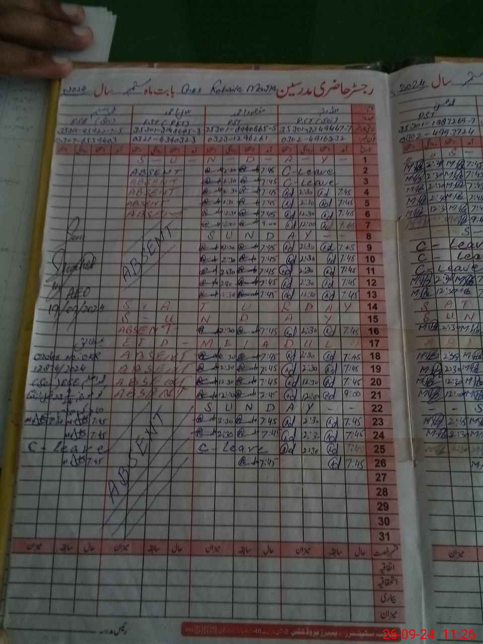 | CNIC | Full Name | Designation | R/C | Absence During Last Calender Month |