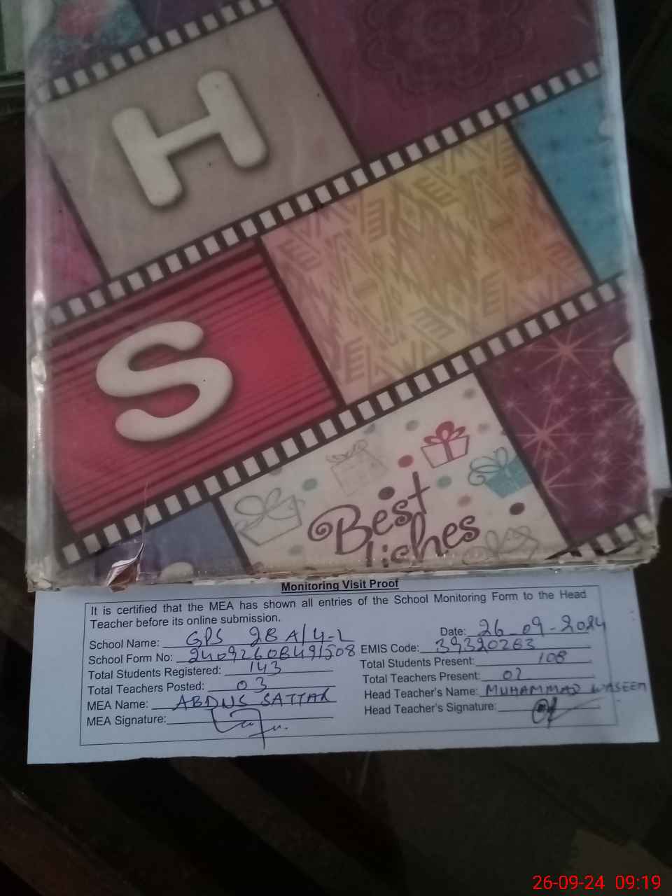 | Attendance Register | Head Teacher | MEA with School | Visit Proof |