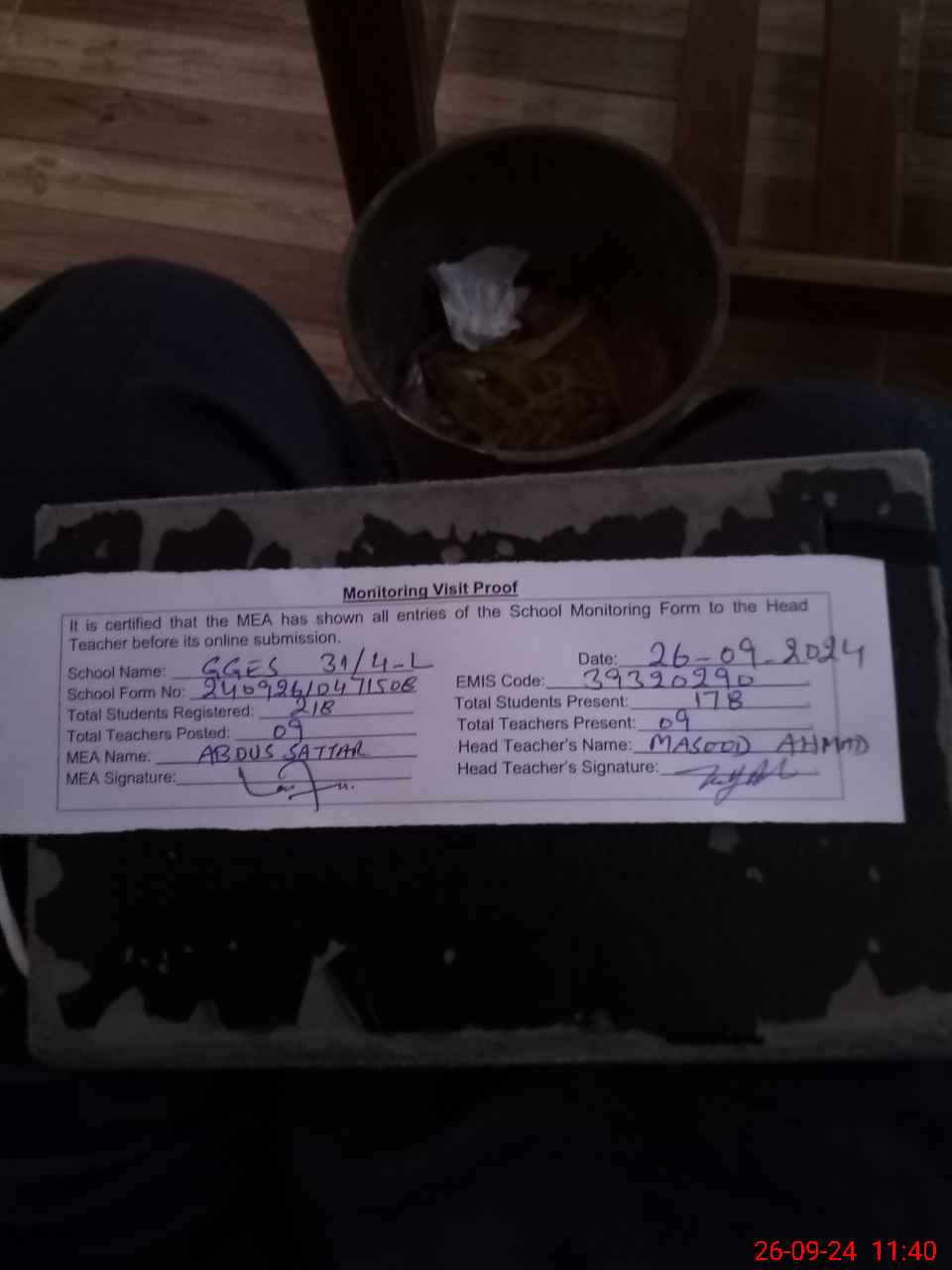 | EMIS Code: 39320290 | Name of School: GES CHAK 31/4-L | |||