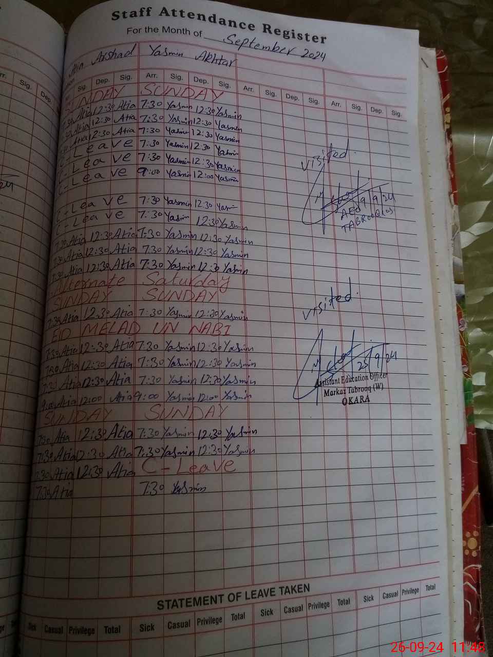 | Leave | Duty | Absent | Maternity | Medical | Ex- Pak |