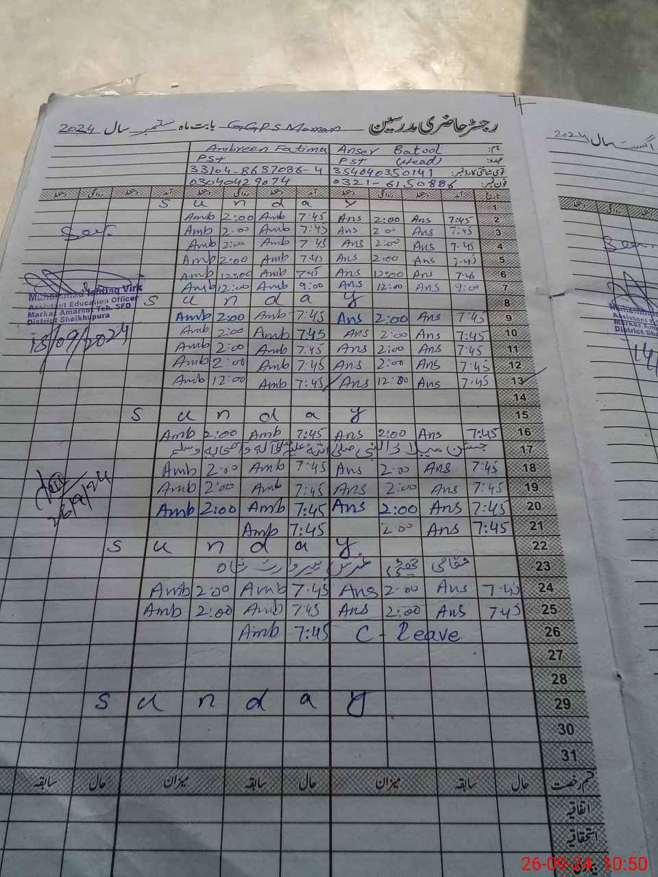 | Name: AN**** BA**** Designation: (School Headmaster's/Headmistress's) PST Phone/Cell Number: 03**** |