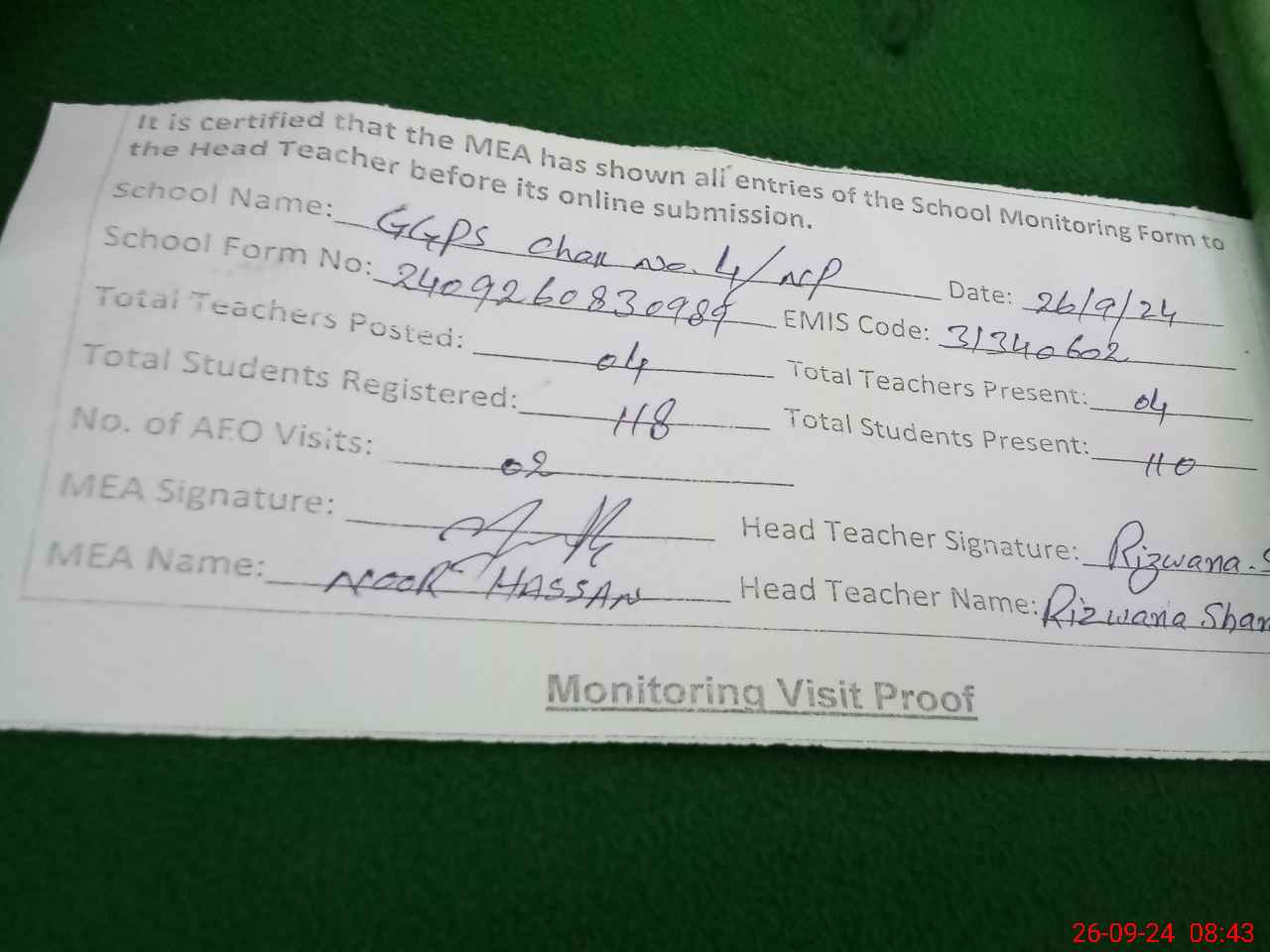 | EMIS Code: 31340602 | Name of School: GGPS CHAK NO.4/NP | |||