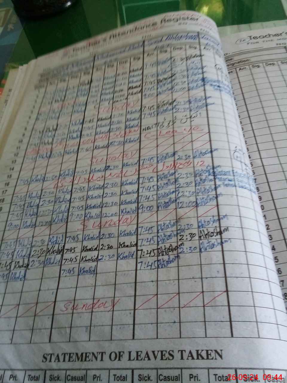 | Leave | Duty | Absent | Maternity | Medical | Ex- Pak |