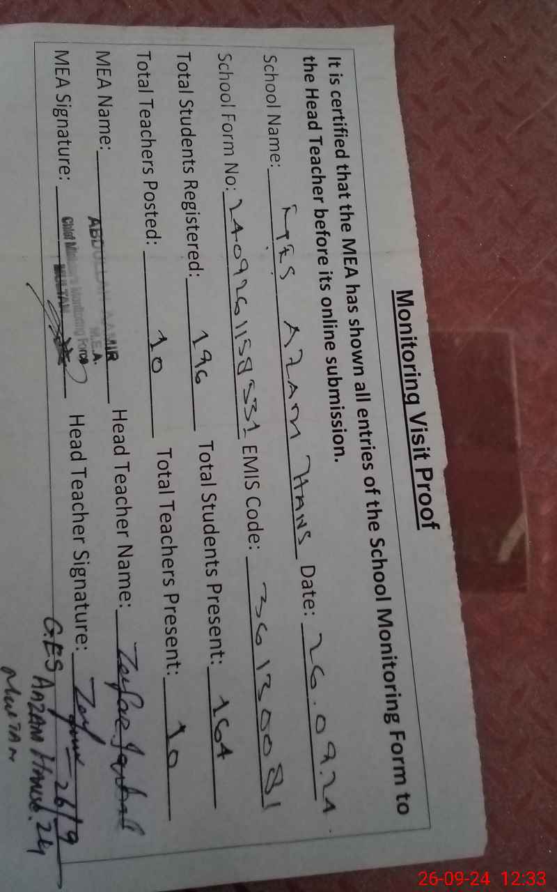 | EMIS Code: 36130081 | Name of School: GES AZAM HANS P/O KOTHAY WALA | |||