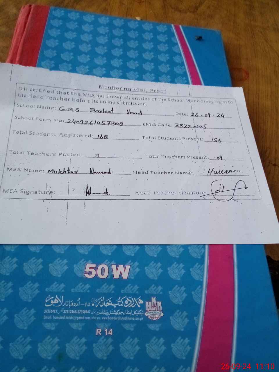 | EMIS Code: 33220105 | Name of School: GHS BARKAT ABAD | |||
