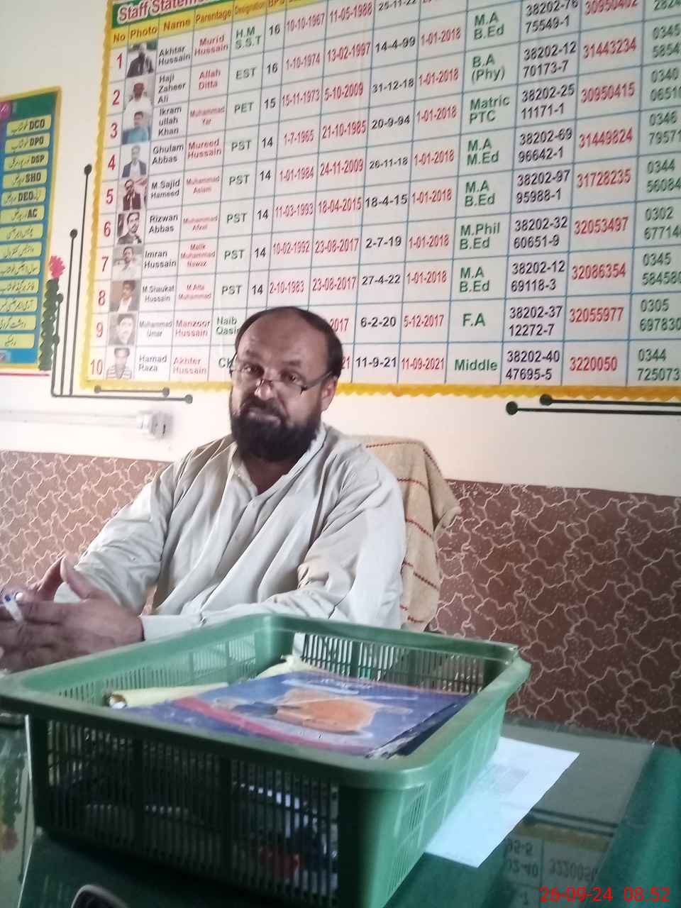 | Name: AK**** HU**** Designation: (School Headmaster's/Headmistress's) SST Phone/Cell Number: 03**** |