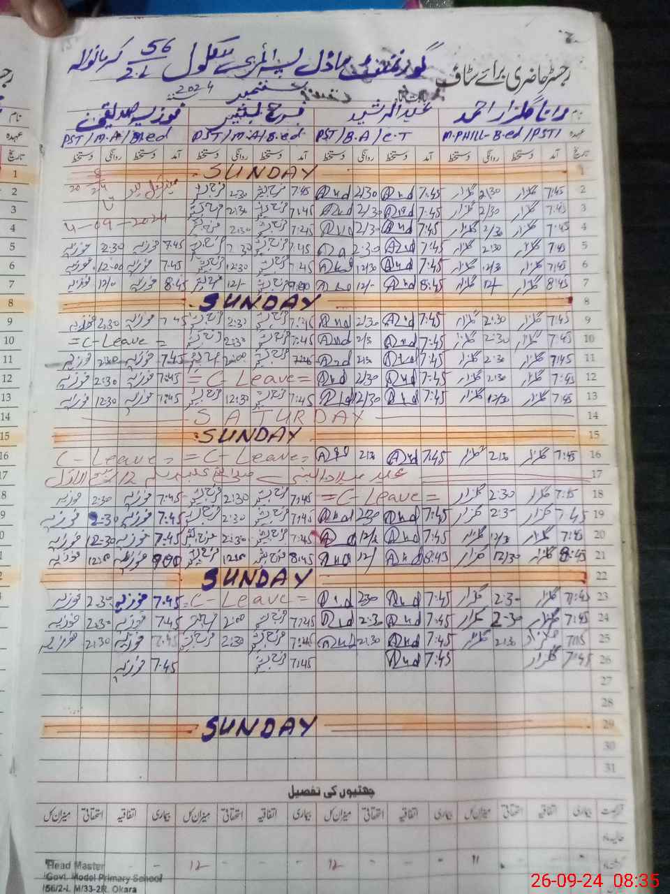 | Leave | Duty | Absent | Maternity | Medical | Ex- Pak |