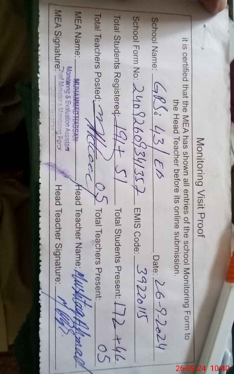 | EMIS Code: 39220115 | Name of School: GES 43 EB | |||