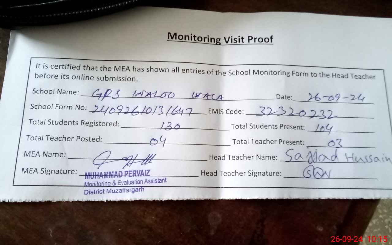 | EMIS Code: 32320232 | Name of School: GPS WALOO WALA | |||