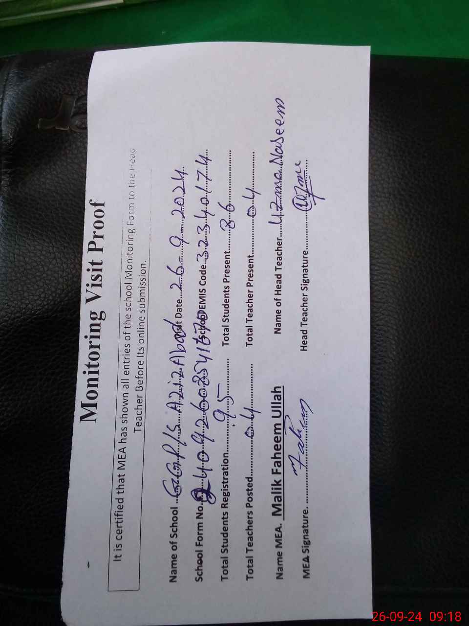 | EMIS Code: 32340174 | Name of School: GGPS AZIZ ABAD | |||