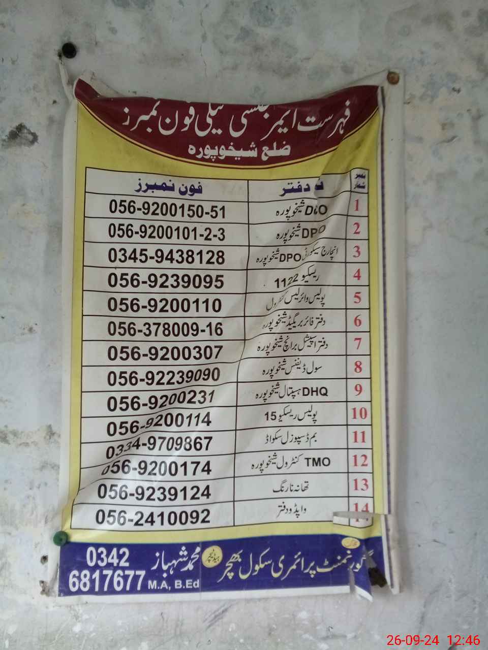 | District: SHEIKHUPURA | Tehsil: MURIDKE | Markaz: MURAD PUR-MALE | Level: Primary | |